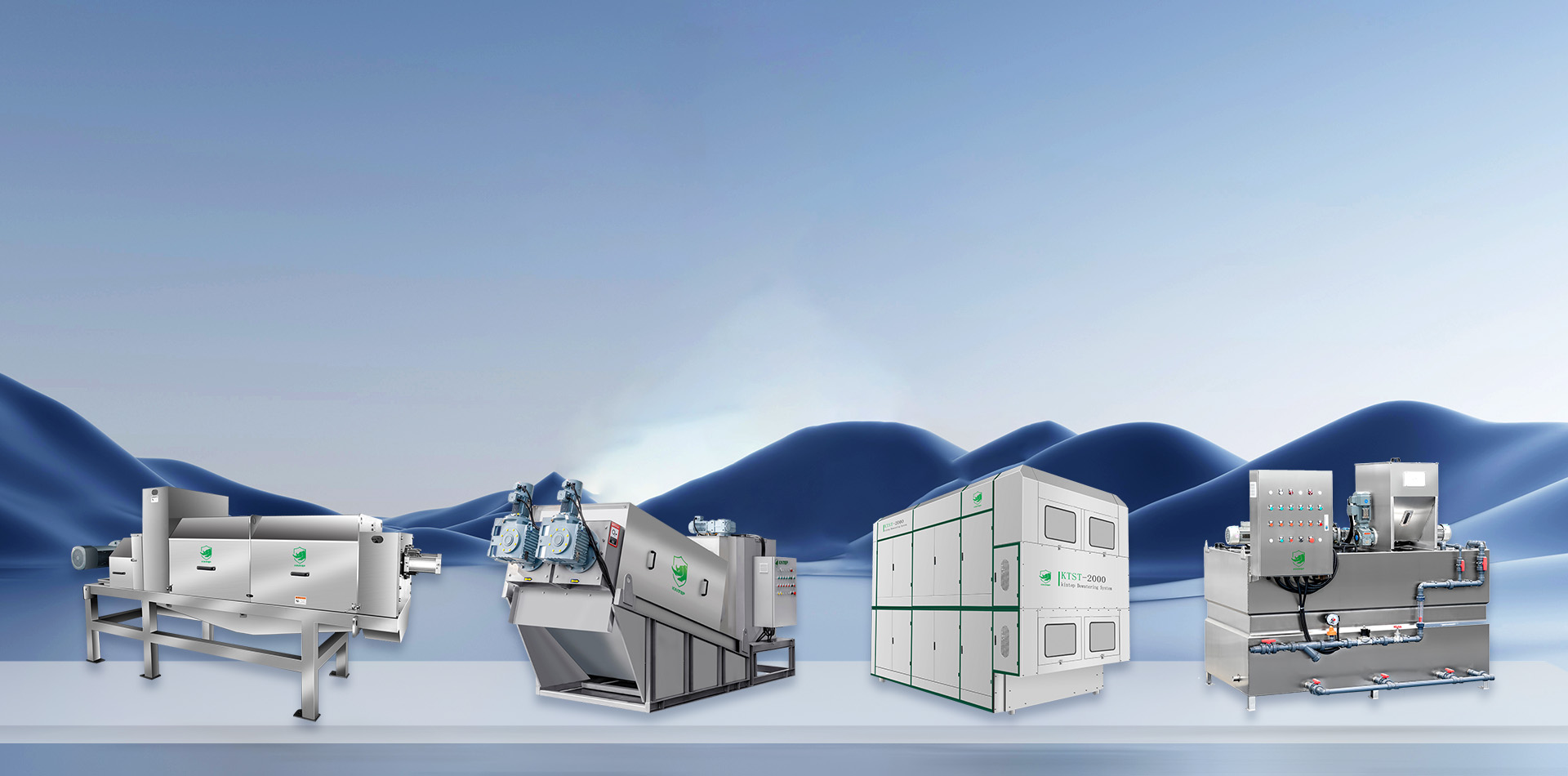 本款設備主要用于污泥脫水,脫水后污泥的含水率可降至75%-85% 疊螺式污泥脫水機集全自動控制柜、絮凝調質槽、污泥濃縮脫水本體及集液槽于一體,可在全自動運行的條件下,實現高效絮凝,并連續完成污泥濃縮和壓榨脫水工作,最終將收集的濾液回流或排放。